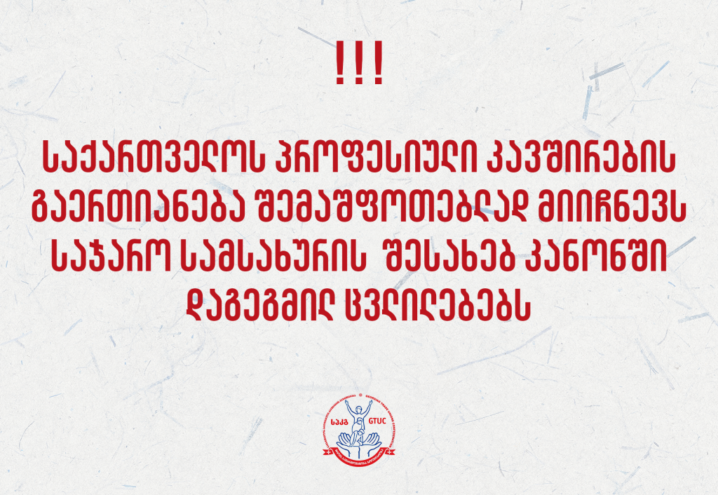 The Georgian Trade Unions Confederation considers the planned amendments to the Georgian Law on Civil Service, which is being discussed in an accelerated manner in the Parliament, to be disturbing and unacceptable.