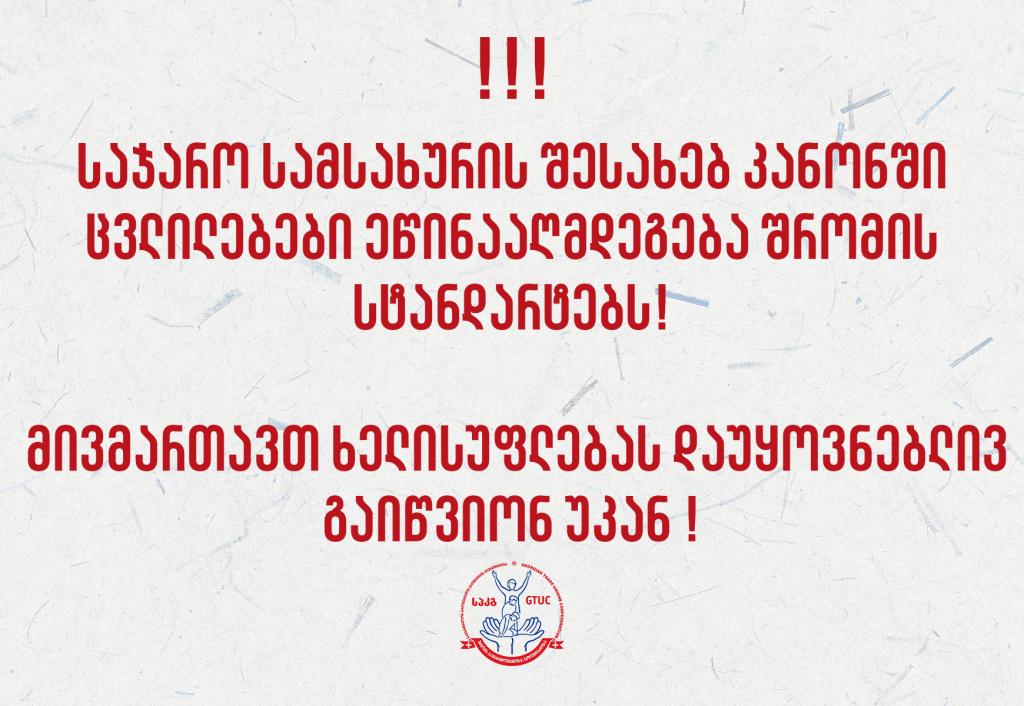 The Georgian Trade Unions Confederation will continue to use all legal mechanisms against the amendments to the Law on Public Service, including appealing to the International Labour Organization for an examination of the adopted amendments with a request to recognize them as contrary to international standards.